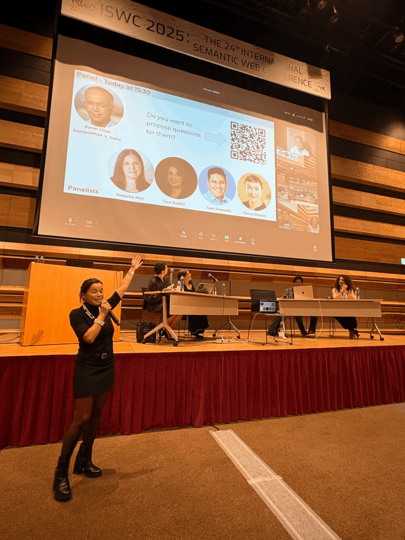 I was honored to be on a panel with Natasha Noy, Tara Raafat, Elena Simperl and moderated by Ramanathan V. Guha, I started by reminding the audience that the essence of the Semantic Web community and everyone attending ISWC is to research how to manage knowledge at scale in a distributed world.
