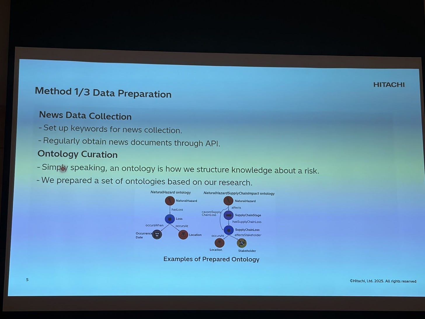 Once you have an ontology, what can you do with it? Hitachi presented “Empowering Supply Chain Risk Monitoring with Ontology-Guided Knowledge Graph Extraction by LLMs” on how they are using semantic technology to build a resilient supply chain starting off by predicting risk within a supply chain.