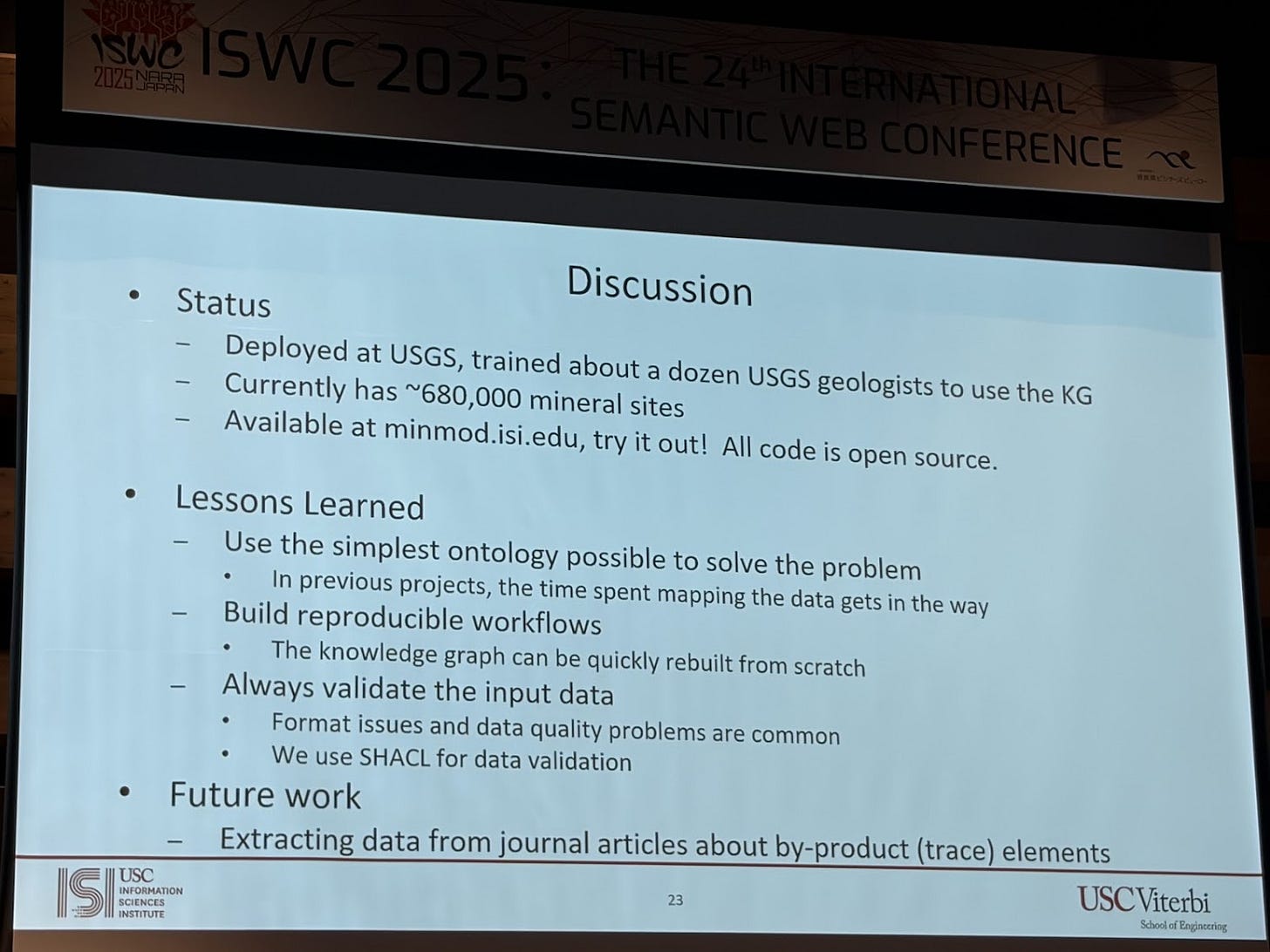 They are applying this work to creating knowledge graphs of critical minerals from reports. This work was nominated for best in-use paper award.
