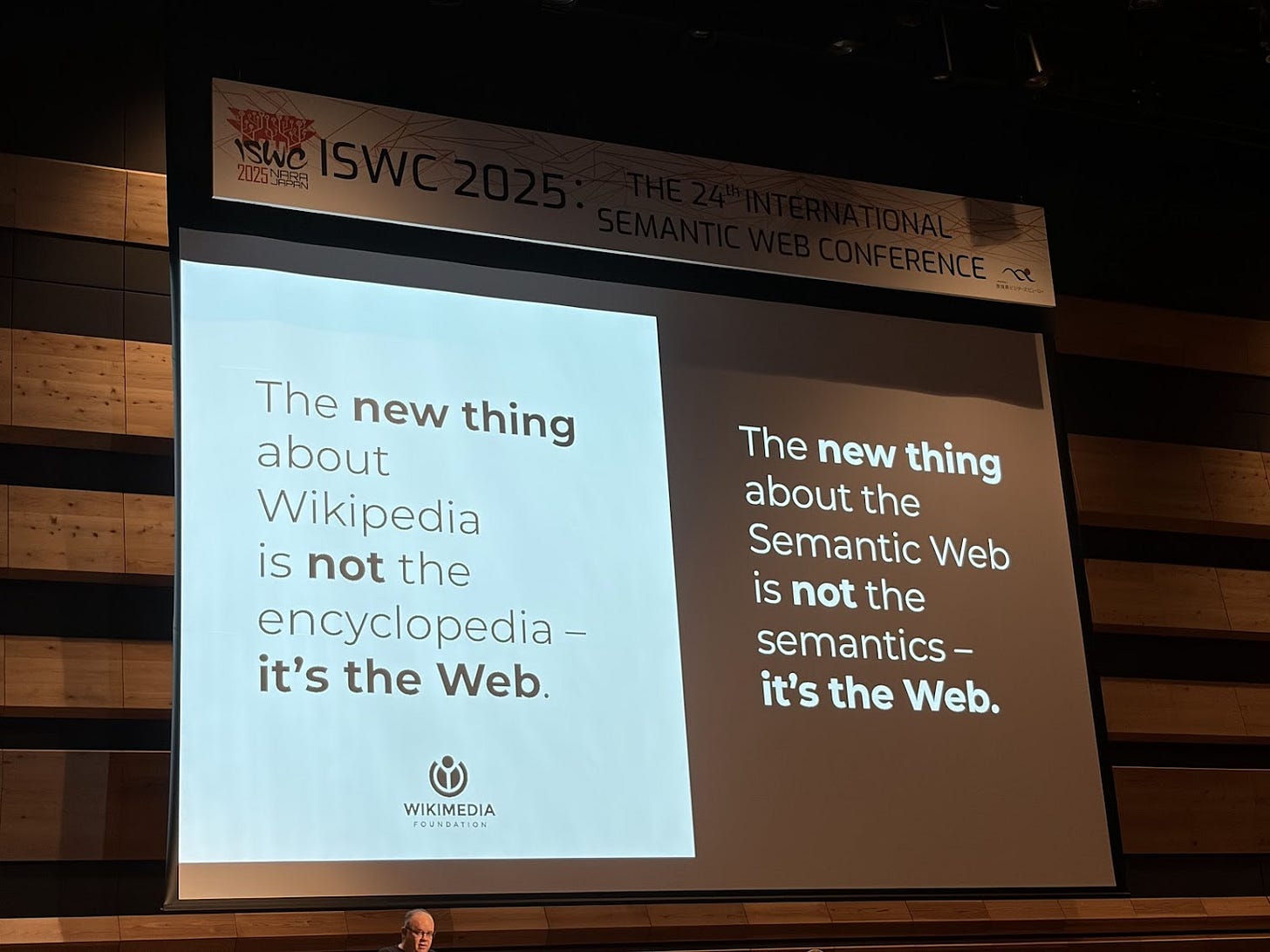 Denny Vrandecic gave a keynote on Wikipedia and the Semantic Web, celebrating 20 years of co-development. It was a beautiful ride through history and a reminder that the most important innovation is the encyclopedia and semantics... it’s the Web!