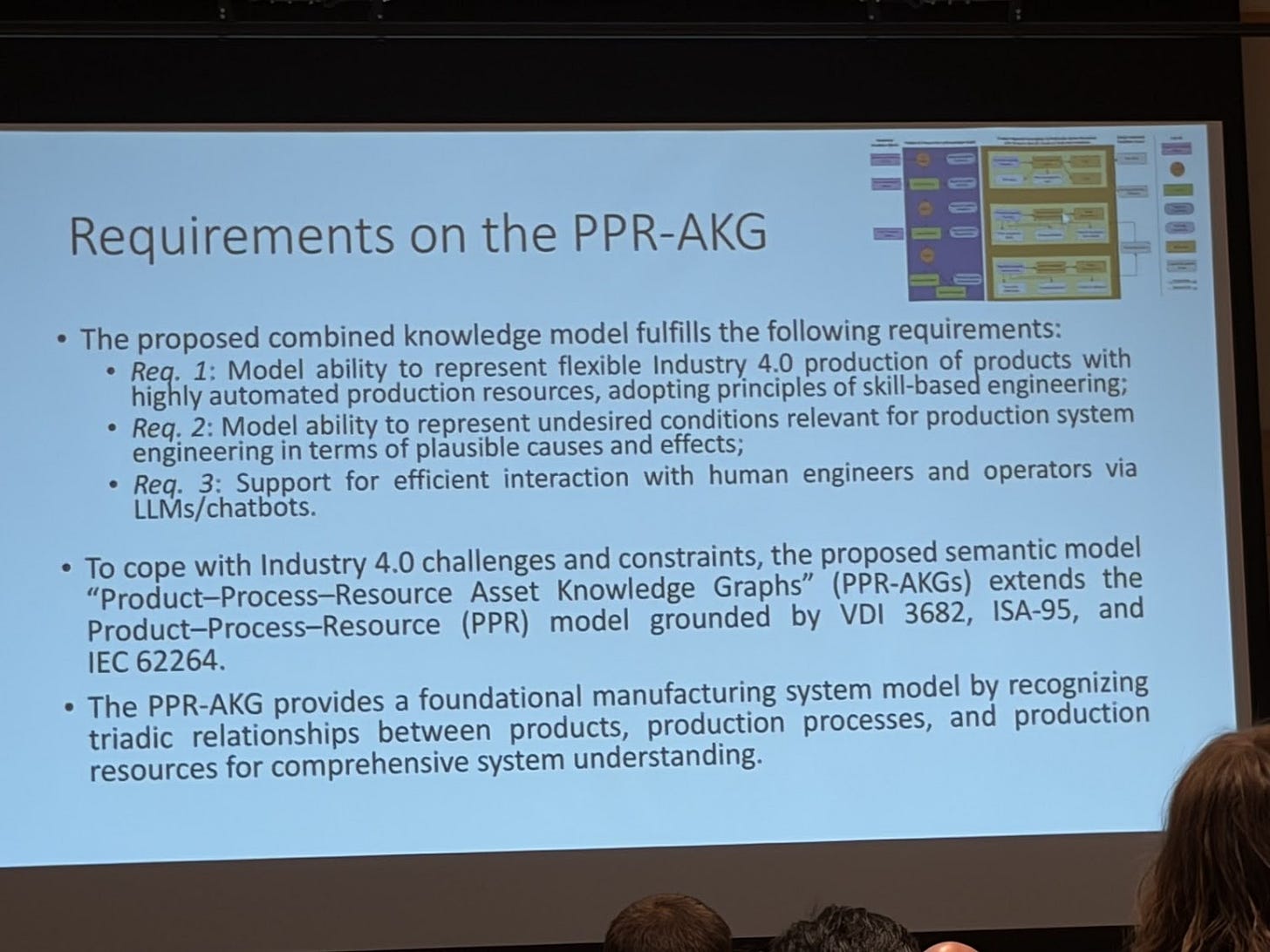 And talking about processes, there was an industry presentation “Mitigating Undesired Conditions in Flexible Production with Product-Process-Resource Asset Knowledge Graphs”. They designed a semantic model realizing the product–process–resource (PPR) asset knowledge graph (AKG) that fulfills the following requirements